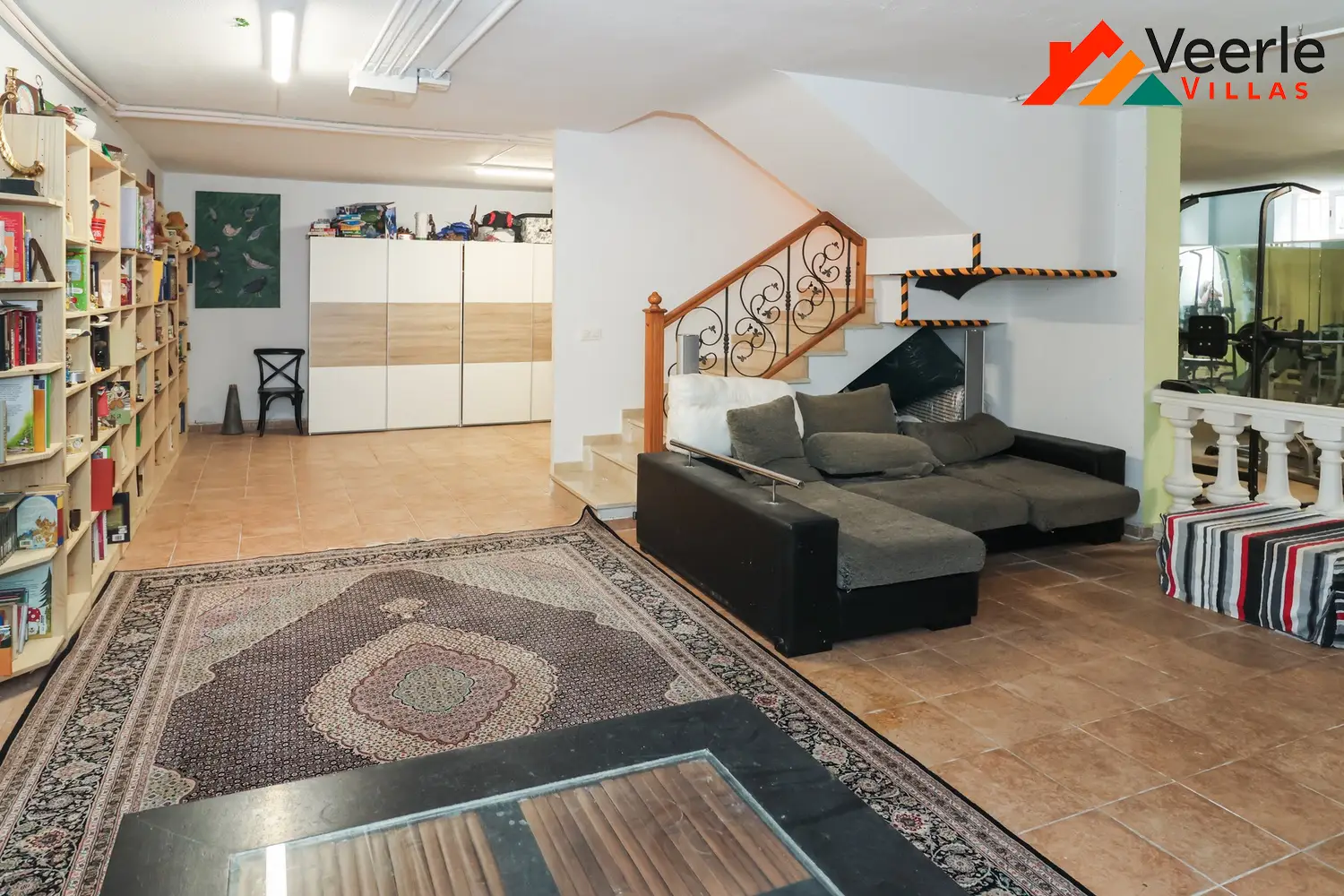 En la planta de abajo hay un sótano diáfano de casi cien m², que se usa como librería, guardarropa y un amplio gimnasio con la maquinaria incluida en el precio.
